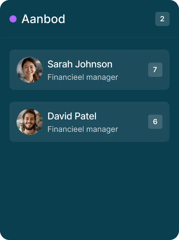 Begeleid kandidaten door uw gepersonaliseerde wervingsproces met ons intuïtieve drag-and-drop kanbanbord.