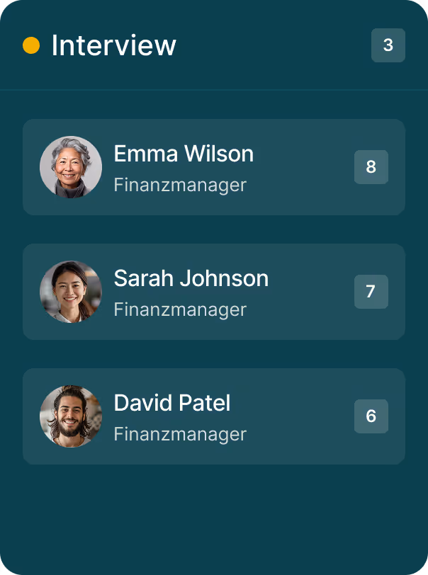 Unsere KI-gestützte Einstellungslösung revolutioniert die Talentakquise durch Schnelligkeit, Genauigkeit und Effizienz.
