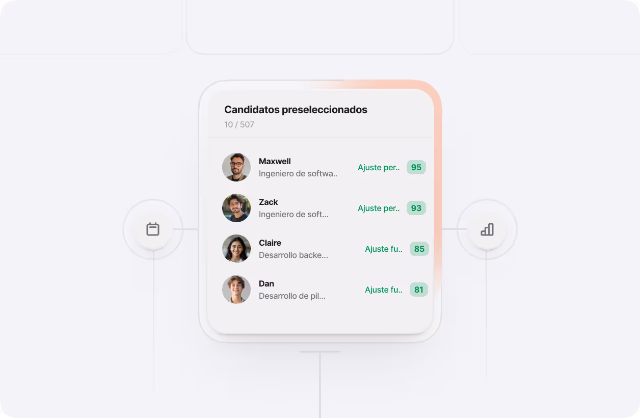 Obtén una lista de candidatos al instante con análisis profundo de IA y concéntrate en las entrevistas, no en la selección manual. Contrata mejor, más rápido.