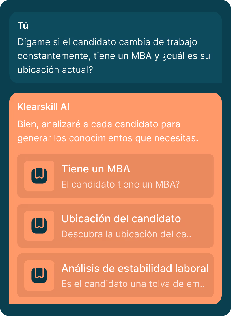 Klearskill analiza a cada candidato, descubre los riesgos y las fortalezas ocultas y le ayuda a tomar mejores decisiones de contratación.